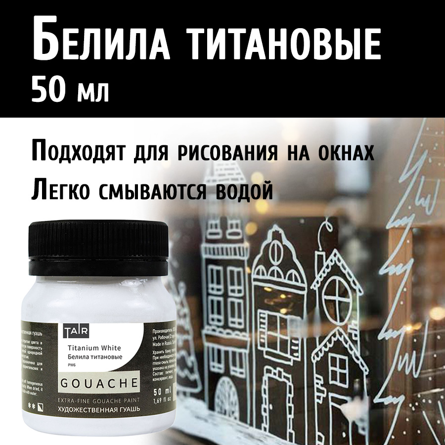 Гуашевые краски «ТАИР» изготавливаются из пигментов и клея с добавлением белил, что придаёт красочному слою гуаши характерную матовую бархатистую поверхность.