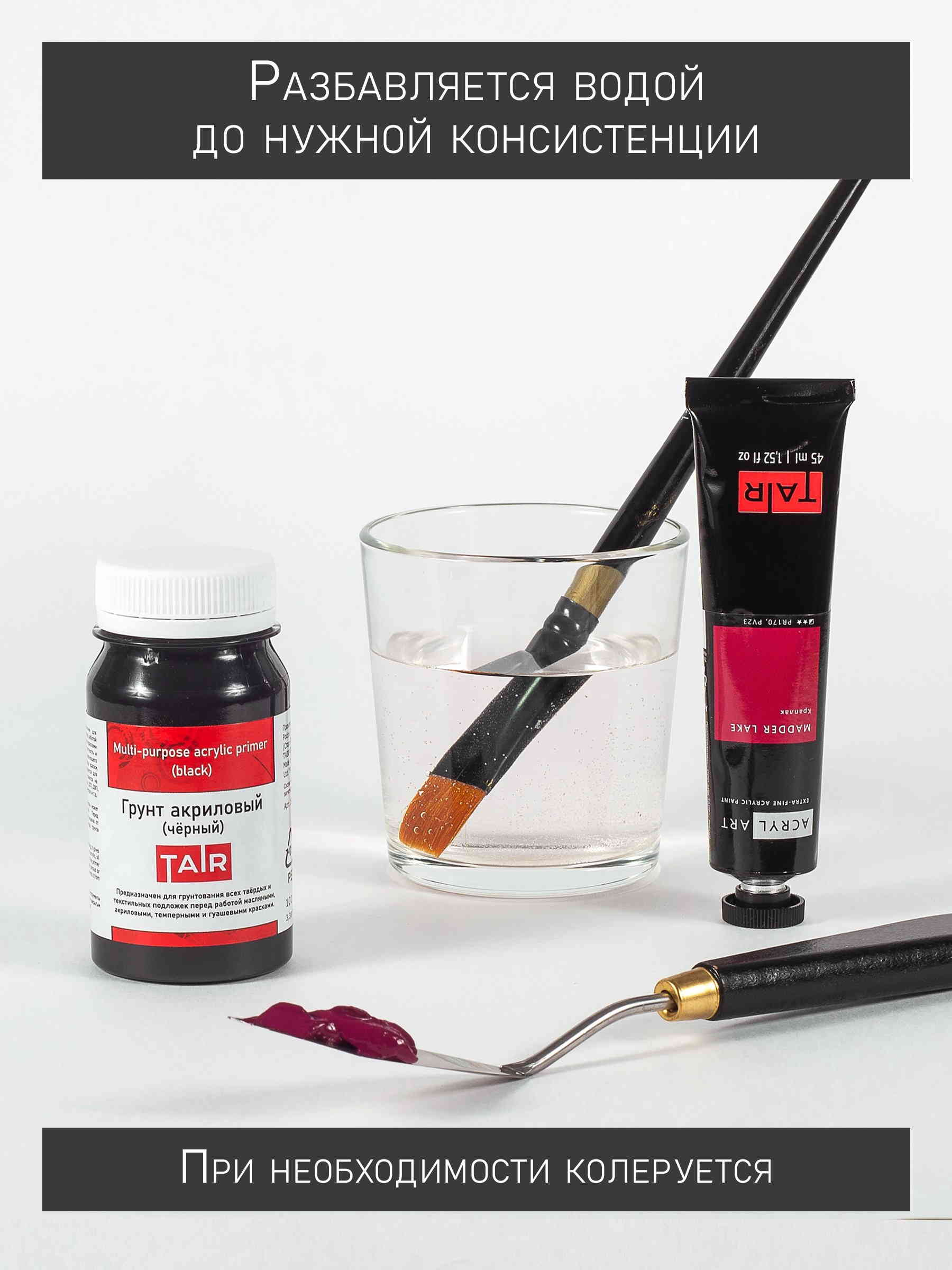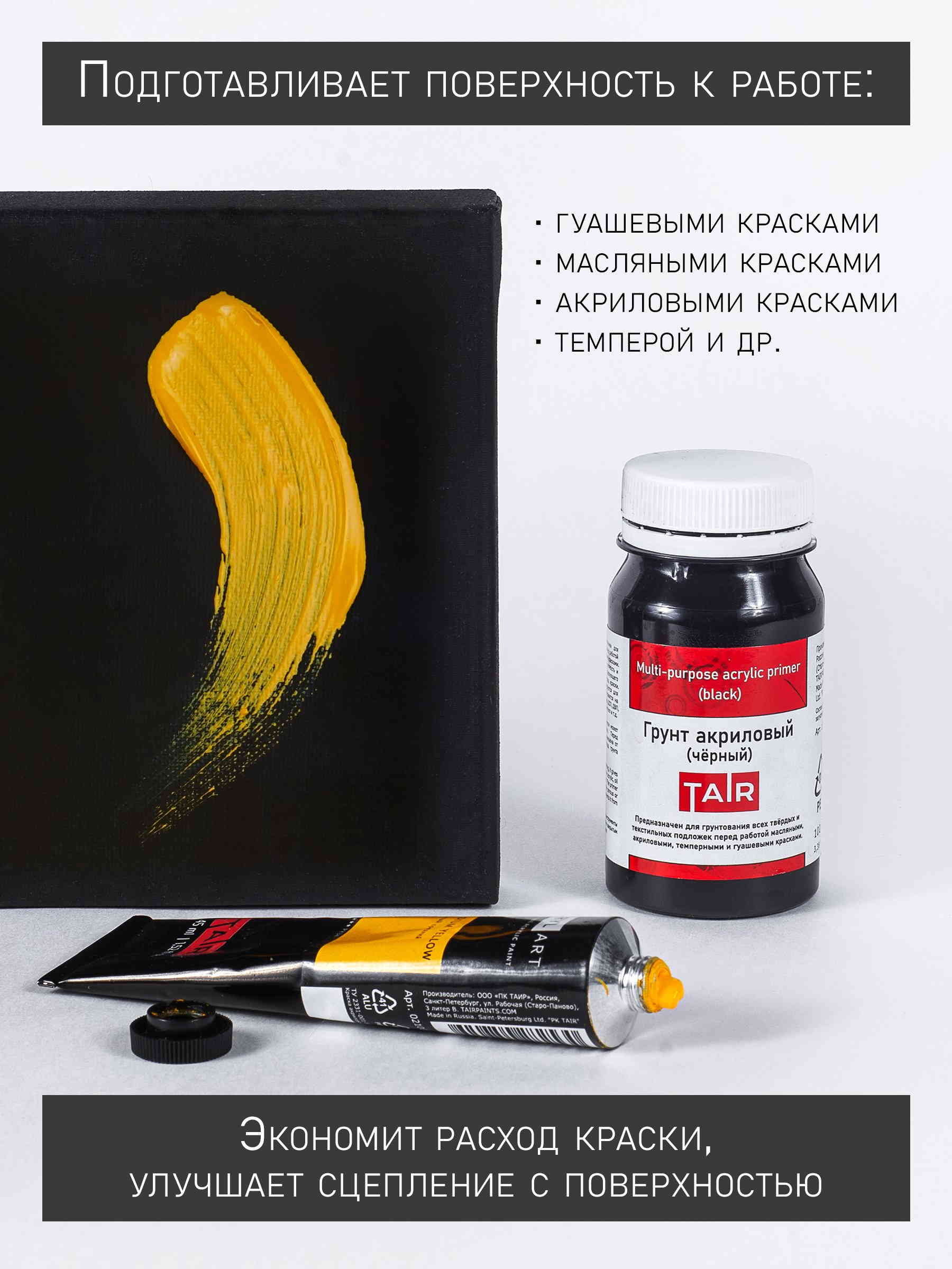 Акриловые грунты ТАИР предназначены для грунтования всех твёрдых и текстильных подложек перед работой масляными, акриловыми, темперными и гуашевыми красками. Подходят для подготовки поверхности в различных декоративных техниках, в том числе декупажа и росписи. Широко используются для грунтования хлопковых и льняных холстов.