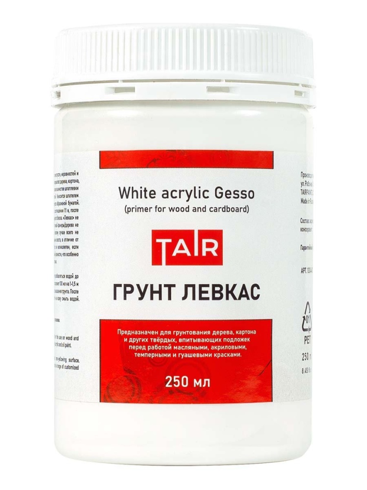 Левкас — это грунт, предназначенный для устранения пористости, неровностей и мелких дефектов поверхности изделий из впитывающих материалов: дерева, картона, МДФ, ДВП, ДСП, гипсокартона, штукатурки и т.п. При необходимости разбавляется водой до нужной вязкости.