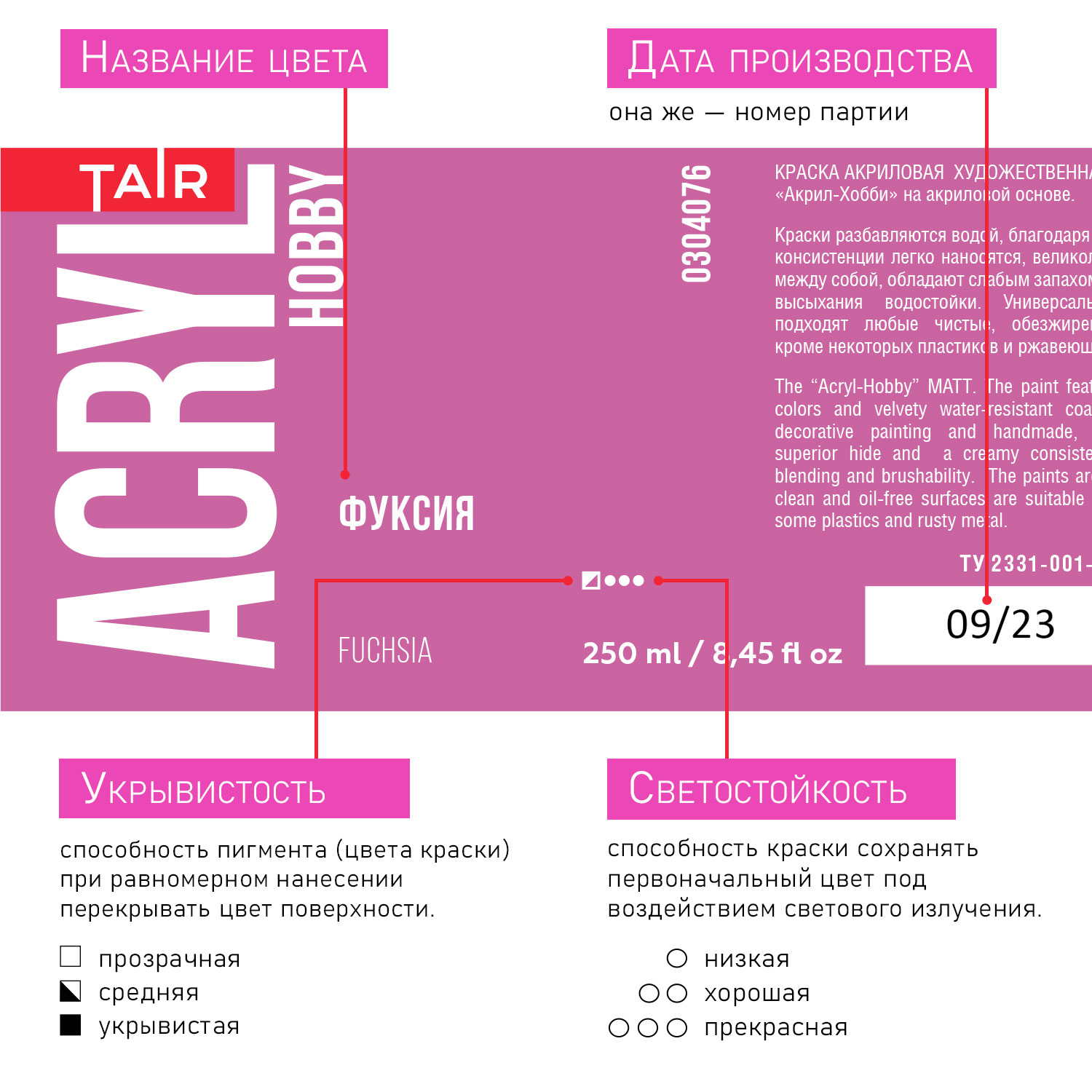 Краски «Акрил-Хобби» — это яркая палитра матовых красок и несколько оттенков «металлик». Краски разбавляются водой, мягкие и кроющие по консистенции. После высыхания не растворимы.