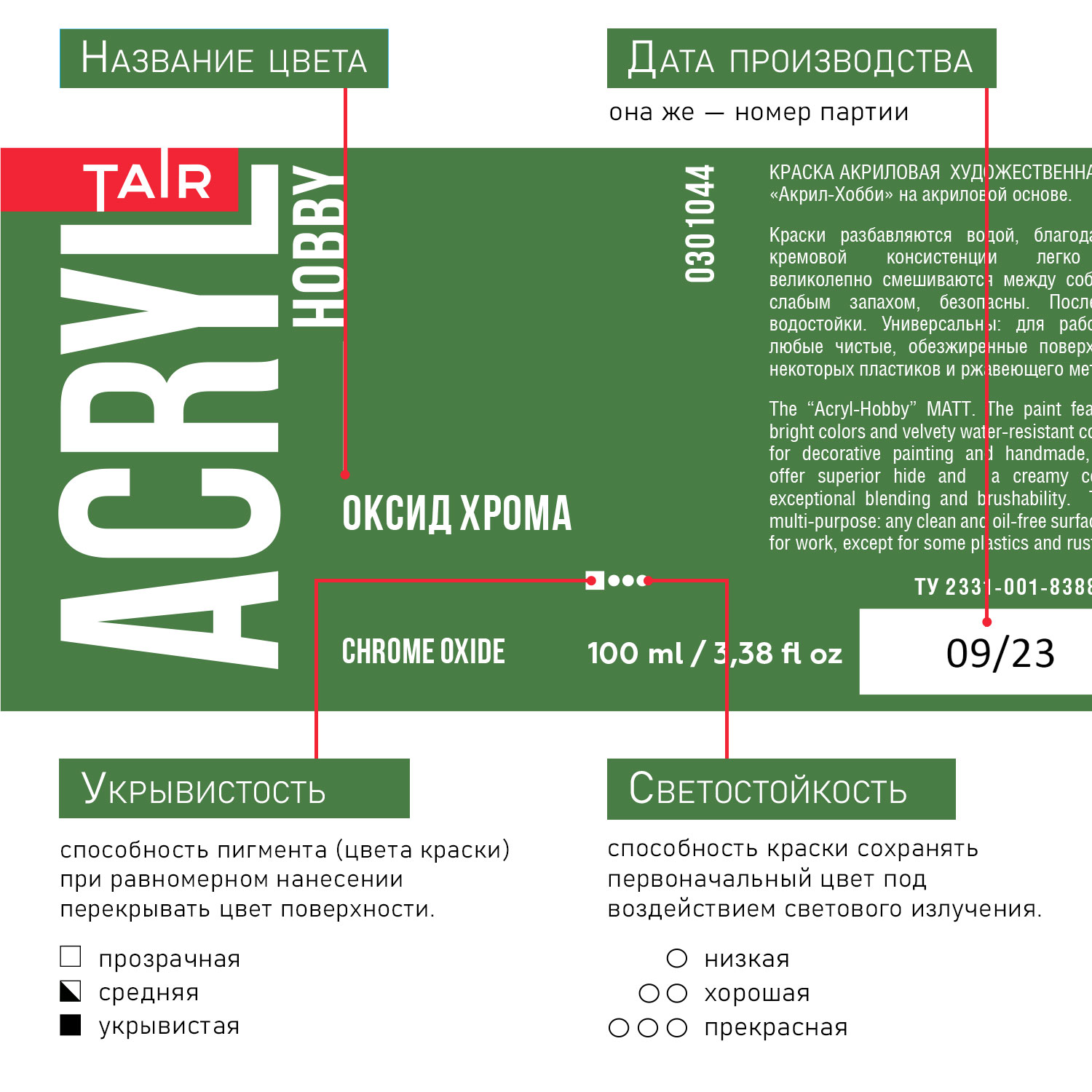 Укрывистость: в зависимости от пигмента.