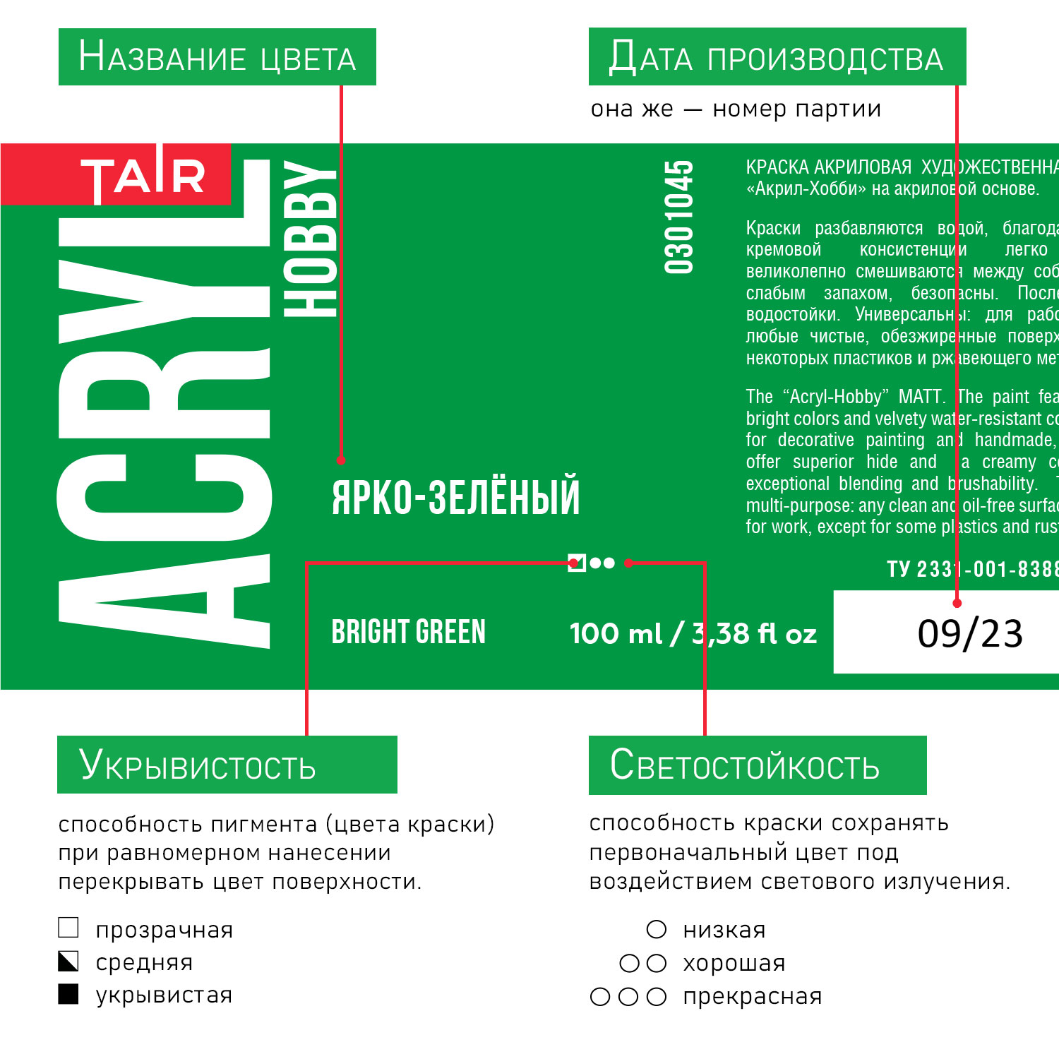 Укрывистость: в зависимости от пигмента.
