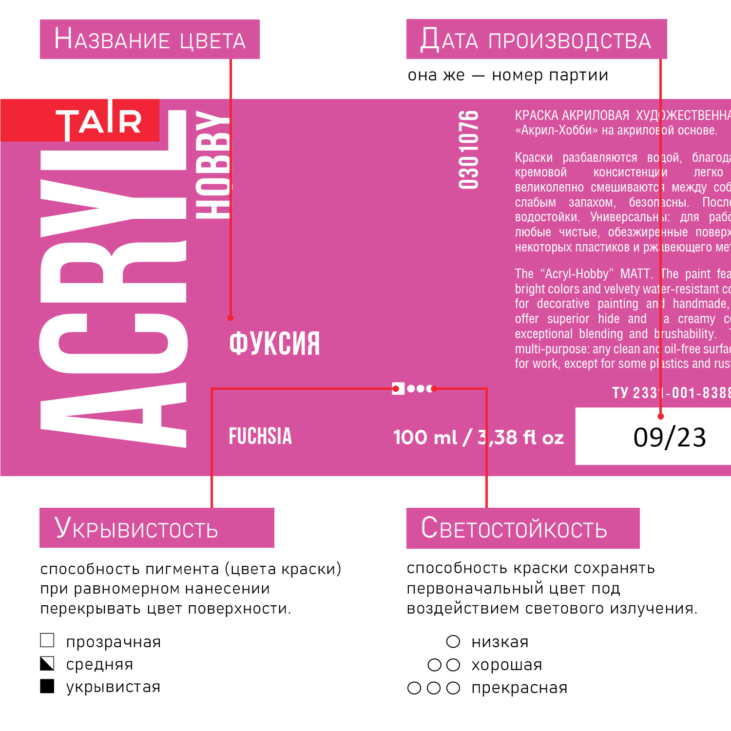 Укрывистость: в зависимости от пигмента.