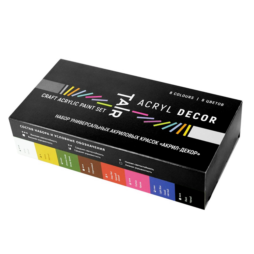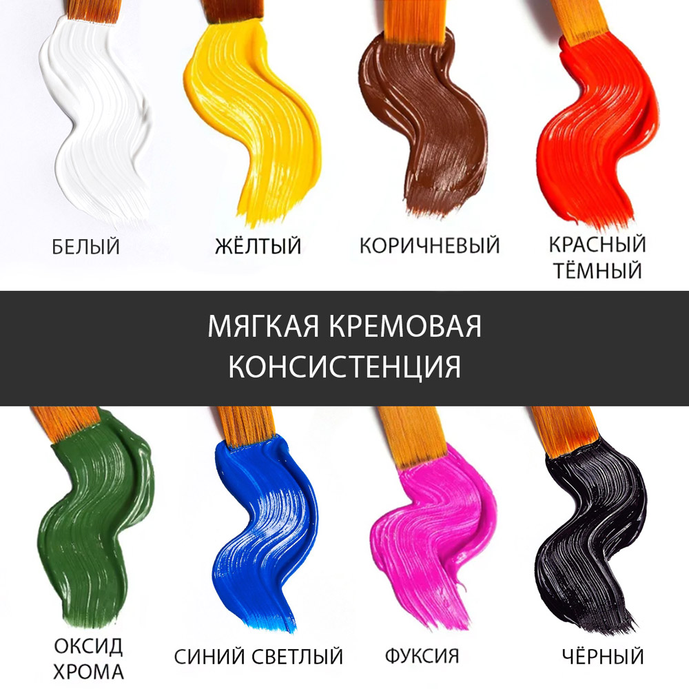 Комплектация: Набор акриловых красок для рисования - 8 цветов по 20 мл в баночке.