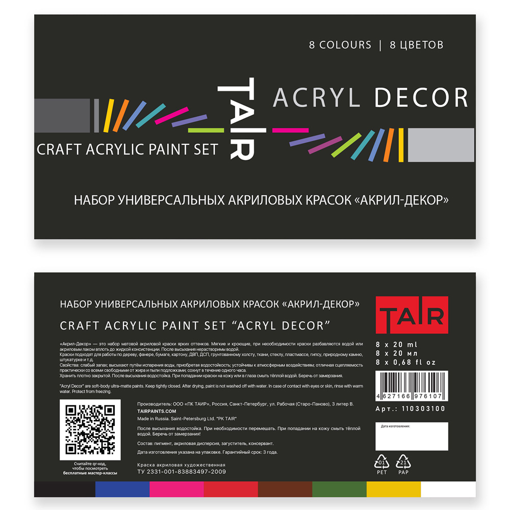 Яркие матовые краски, подходящие для различных видов творчества. Обладают мягкой кремообразной консистенцией и хорошей укрывистостью. Легко разбавляются водой. Превосходно подходят для декоративно-прикладных, интерьерных и дизайнерских работ, различных видов творчества, в том числе и детского.
