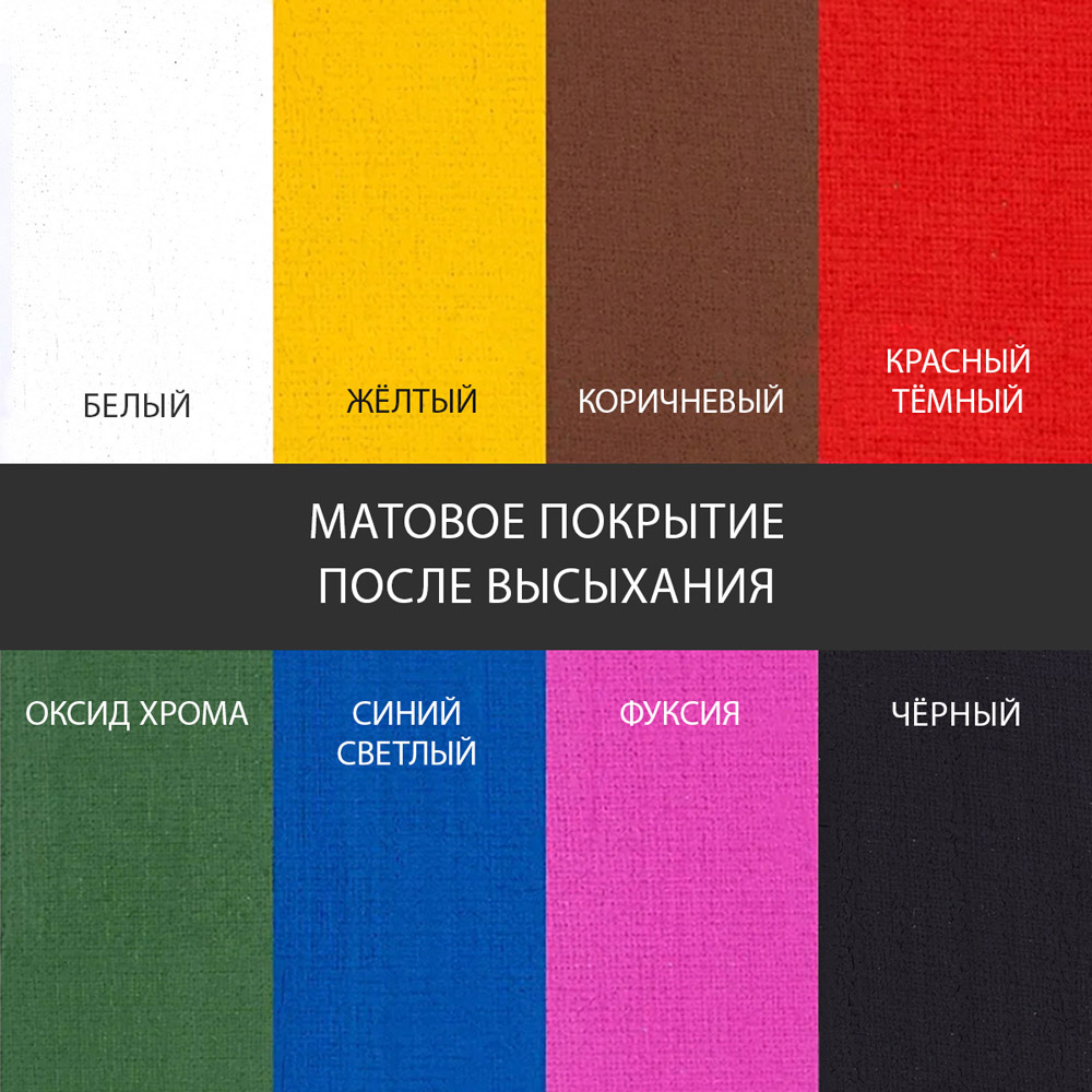 Подходящие поверхности: дерево, фанера, бумага, картон, грунтованный холст, ткани, стекло, грунтованный металл, бетон, кирпич, гипс, природный камень, штукатурка и др.