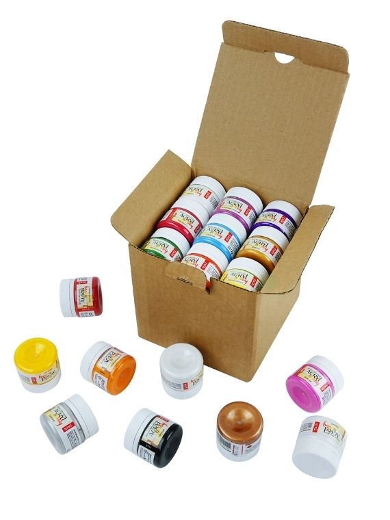 Яркие матовые краски, подходящие для различных видов творчества. Обладают кремообразной консистенцией, и хорошей укрывистостью.