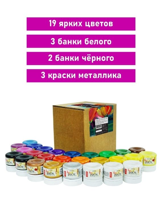 Краски Акрил-Хобби — это яркая палитра матовых красок и несколько оттенков «металлик».