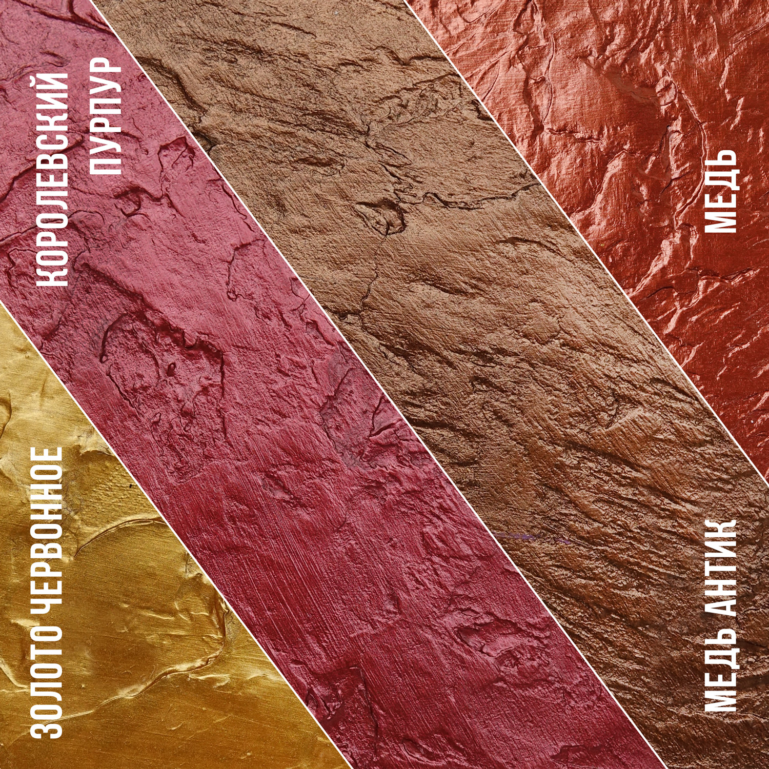 Краска отличается насыщенным металлическим эффектом и уникальной консистенцией: наносится с одного слоя, мягко идёт за кистью и легко перекрывает подложку, напоминая жидкую поталь