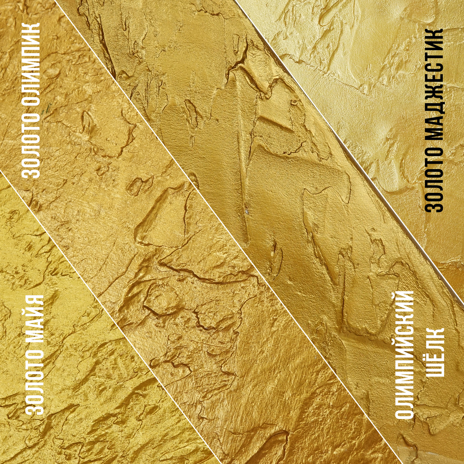 Краска отличается насыщенным металлическим эффектом и уникальной консистенцией: наносится с одного слоя, мягко идёт за кистью и легко перекрывает подложку, напоминая жидкую поталь