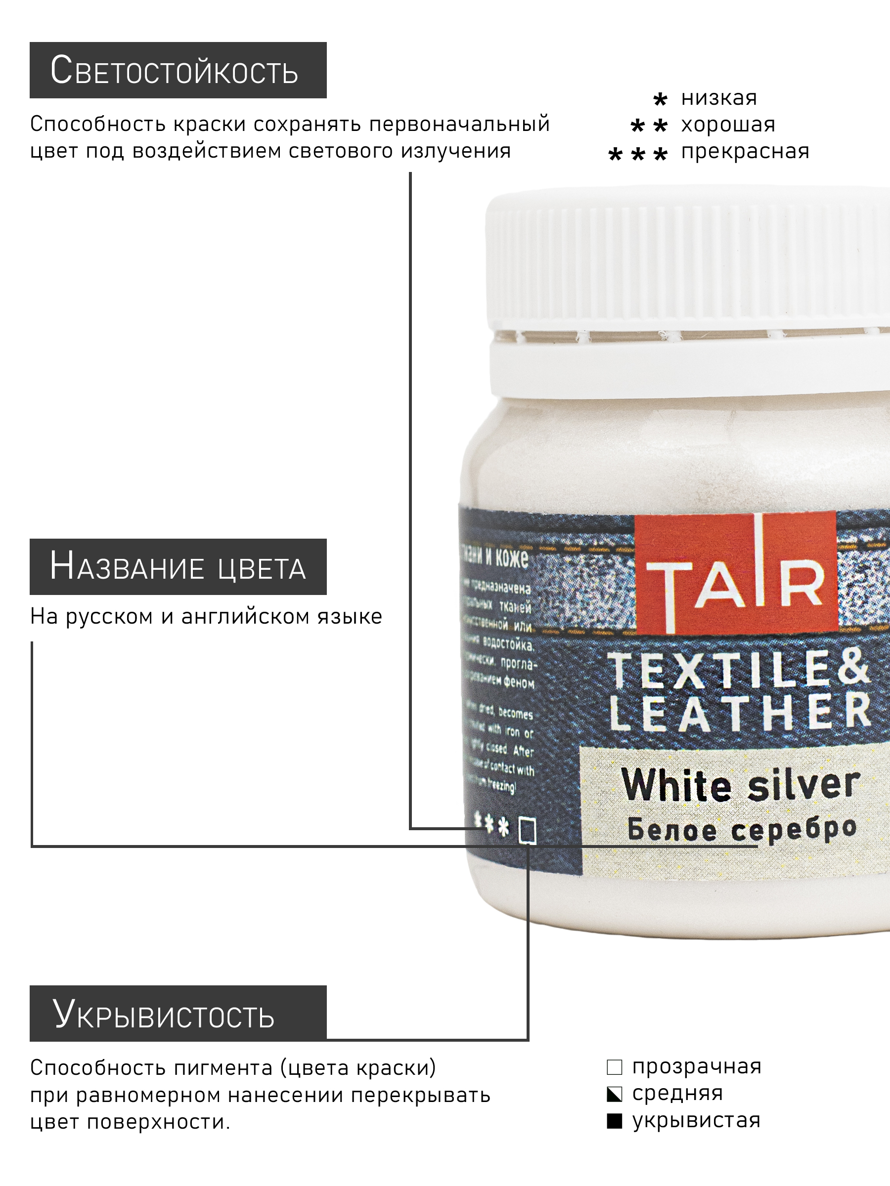 • Высокий уровень светостойкости (в зависимости от пигмента).