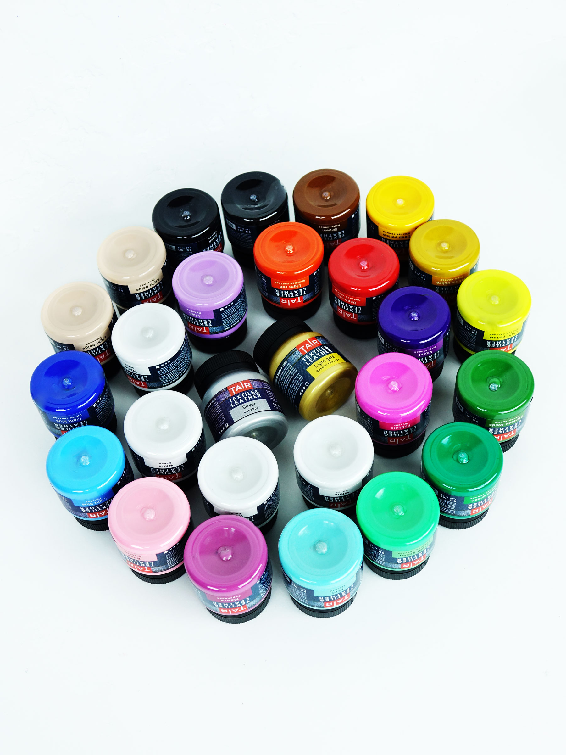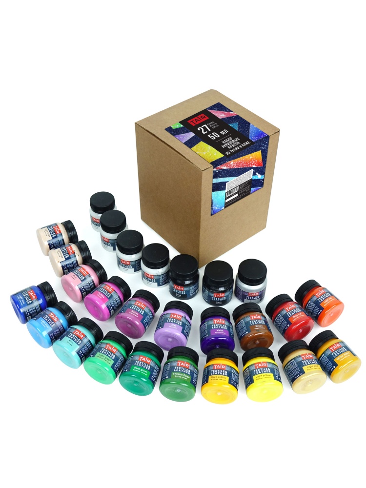 Набор акриловых красок по ткани и коже. В наборе 27 цветов по 50мл.