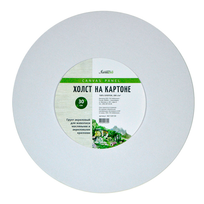 Грунтованный холст на круглом картоне, 100% хлопок. Подходит для работы масляными, акриловыми и темперными красками.