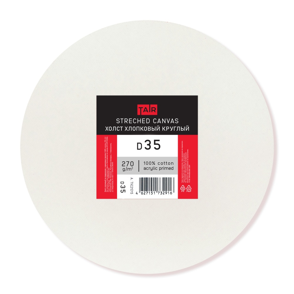 Грунтованный холст на круглом подрамнике, 100% хлопок. Идеально подходит для работы масляными, акриловыми и темперными красками.