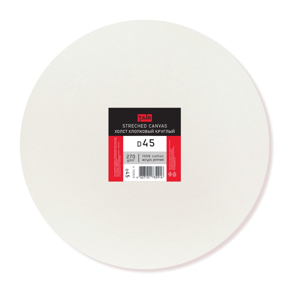 Грунтованный холст на круглом подрамнике, 100% хлопок. Идеально подходит для работы масляными, акриловыми и темперными красками.