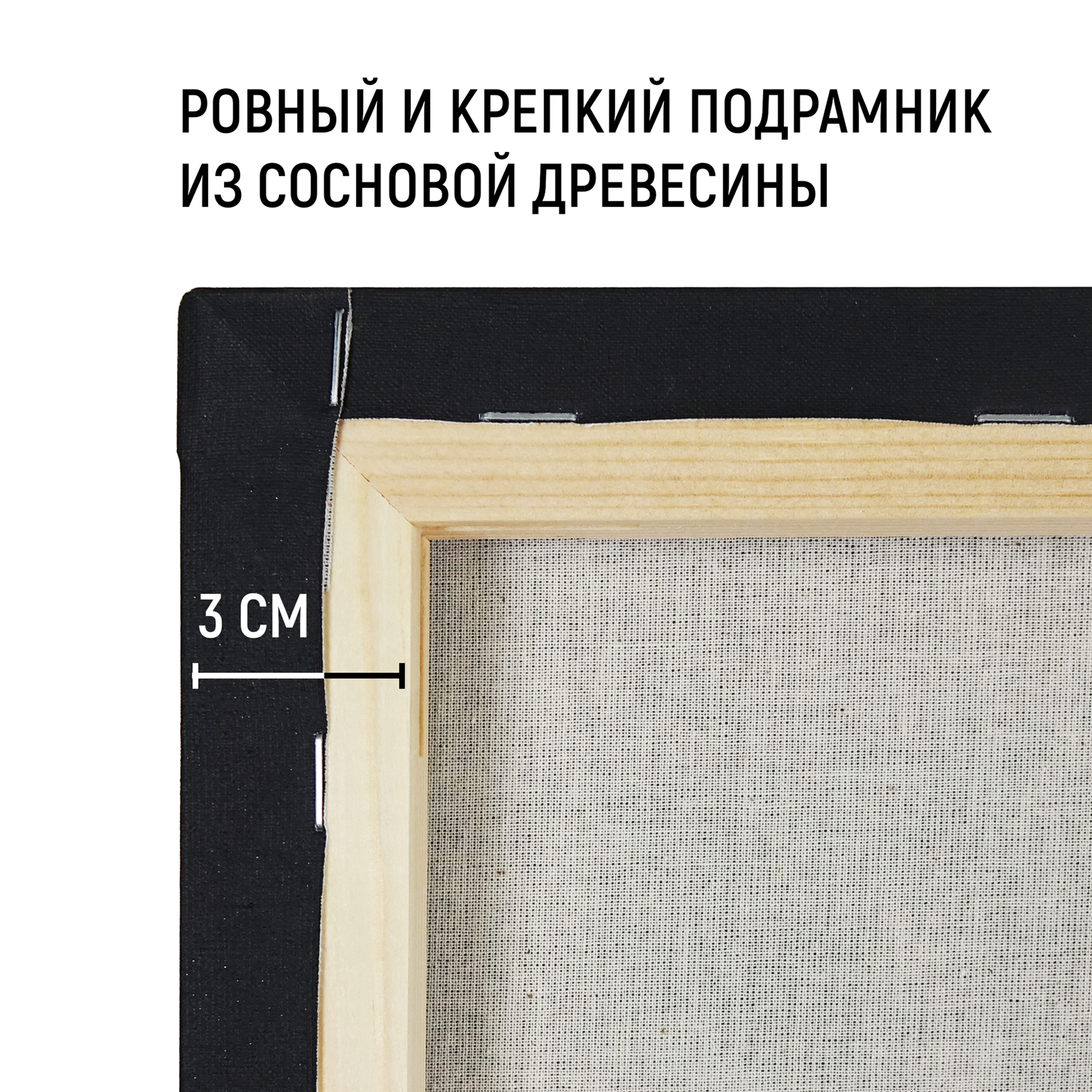 • Качественная обработка древесины подрамника.