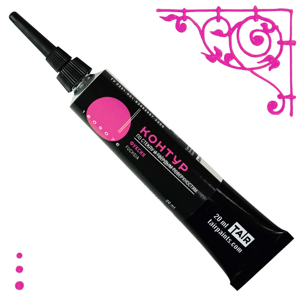 Контуры — это акриловые краски в тубе с острым наконечником, которые наносятся прямо из тюбика. Предназначены для создания контурных и точечных рисунков на стекле и других твердых поверхностях. Обладают высокой рельефностью и хорошо держат форму. Акриловые контуры для стекла и других твердых поверхностей обладают густой консистенцией. Они прекрасно ложатся на любые очищенные и обезжиренные подложки: стекло, керамику, фарфор, глину, дерево, камень и другие. Контуры ТАИР отлично зарекомендовали себя в технике популярной точечной росписи и имитации вышивки. Кроме того, они используются для подрисовок тонких линий, узоров и рисования надписей в миксмедийных и скрапбукинговых техниках. В декупаже контуры часто применяются для того, чтобы скрыть границу приклеенного рисунка или для подрисовки отдельных элементов.