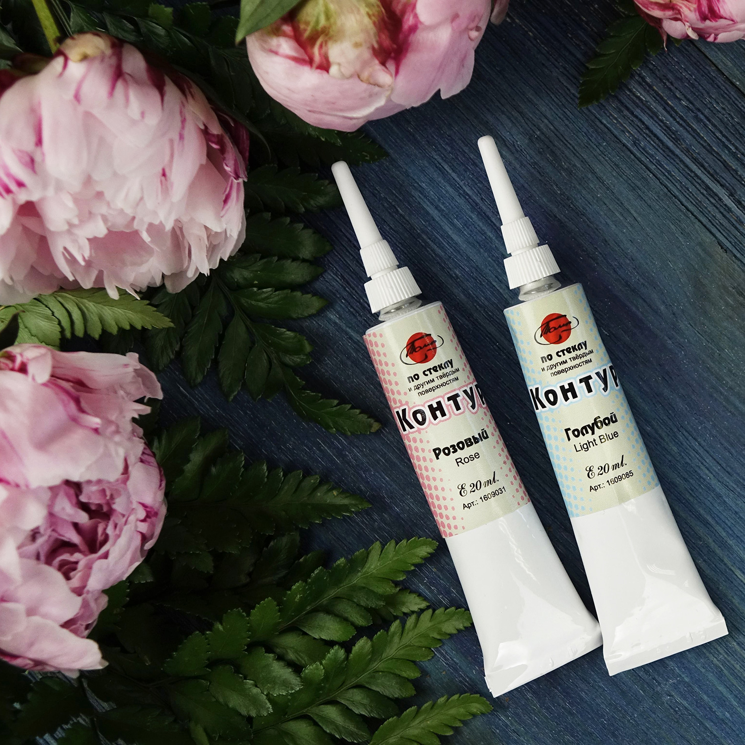 Контуры — это акриловые краски в тубе с острым наконечником, которые наносятся прямо из тюбика. Предназначены для создания контурных и точечных рисунков на стекле и других твердых поверхностях. Обладают высокой рельефностью и хорошо держат форму.