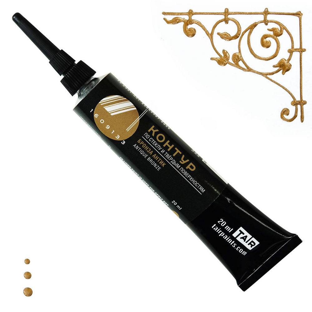 Контуры — это акриловые краски в тубе с острым наконечником, которые наносятся прямо из тюбика. Предназначены для создания контурных и точечных рисунков на стекле и других твердых поверхностях. Обладают высокой рельефностью и хорошо держат форму. Акриловые контуры для стекла и других твердых поверхностей обладают густой консистенцией. Они прекрасно ложатся на любые очищенные и обезжиренные подложки: стекло, керамику, фарфор, глину, дерево, камень и другие. Контуры ТАИР отлично зарекомендовали себя в технике популярной точечной росписи и имитации вышивки. Кроме того, они используются для подрисовок тонких линий, узоров и рисования надписей в миксмедийных и скрапбукинговых техниках. В декупаже контуры часто применяются для того, чтобы скрыть границу приклеенного рисунка или для подрисовки отдельных элементов.