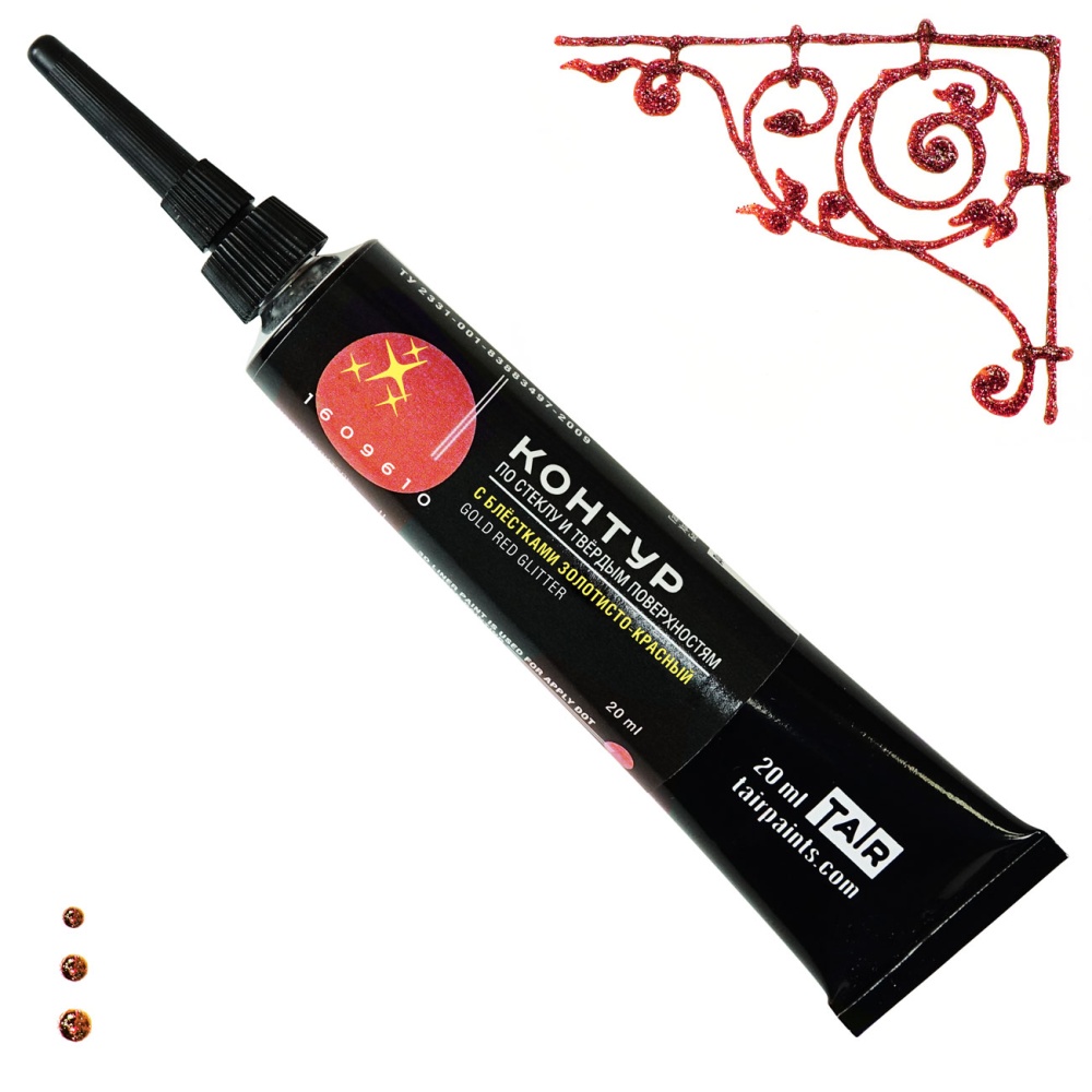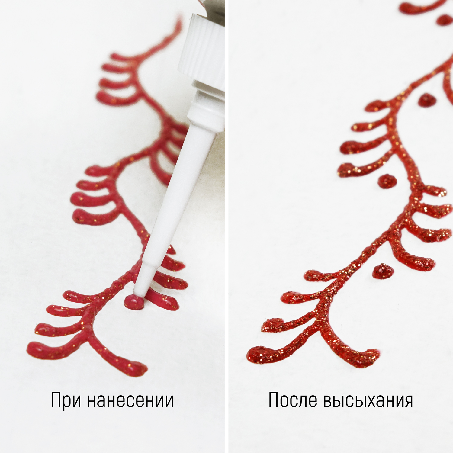 Контуры с блёстками находят применение в декоративно-прикладном искусстве, детском творчестве, в оформлении и украшении поделок, игрушек, всевозможных украшениях и аксессуарах ручной работы. Особой популярностью пользуются контуры с блестками при создании ярких и блестящих элементов в новогоднем и рождественском декоре. Контуры с блёстками ТАИР отличает высокая плотность мерцающих частиц — глиттеров, которые надежно удерживаются в основе после высыхания, не осыпаются и не пачкают руки. С помощью них вы легко создадите чудесный переливающийся контур, цветной или просто наполненный яркими блестками. Хорошая рельефность и блеск сочетаются с гибкостью линии, контур можно использовать даже на тянущихся тканях.