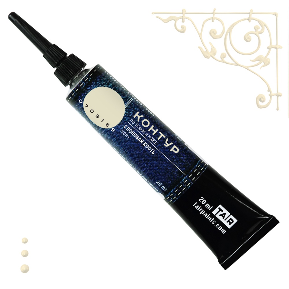 Контуры — это акриловые краски в тубе с острым наконечником, которые наносятся прямо из тюбика. Предназначены для создания контурных и точечных рисунков на ткани и коже. Также могут применяться и на других поверхностях, таких как дерево, бумага, пластик и т.д. Обладают высокой рельефностью и хорошо держат форму. Акриловые контуры ТАИР обладают густой консистенцией и отлично зарекомендовали себя в технике популярной точечной росписи и имитации вышивки. Кроме того, они используются для подрисовок тонких линий, узоров и рисования надписей в миксмедийных и скрапбукинговых техниках. В декупаже контуры часто применяются для того, чтобы скрыть границу приклеенного рисунка или для подрисовки отдельных элементов.