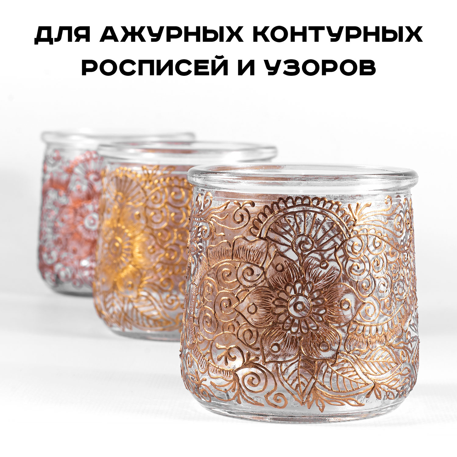 Контурная паста — это металлизированная акриловая паста в тубе с острым наконечником, которая наносится прямо из тюбика. Предназначена для создания контурных рисунков на стекле, дереве и других твёрдых поверхностях. Обладает высокой рельефностью и хорошо держит форму.