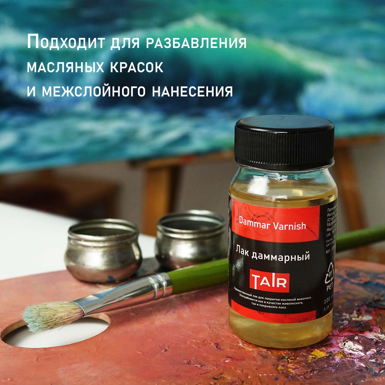 Самый популярный в живописи лак для защиты картин, применяемый как в качестве живописного, так и покрывного лака.