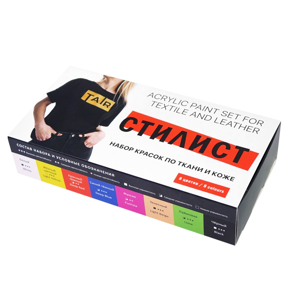 Набор акриловых красок по коже и ткани «Стилист» составлен из красивых ярких оттенков, которые прекрасно подходят для создания модных аксессуаров и кастомизации одежды. Все цвета, входящие в состав набора, отличаются высокой укрывистостью.