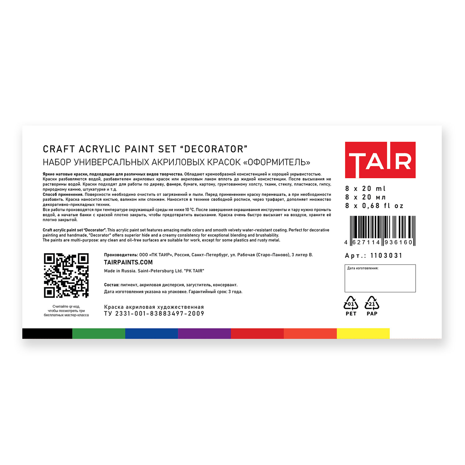 Набор из 8 цветов ярких матовых универсальных красок, подходящих для различных видов творчества. Краски обладают приятной кремообразной консистенцией, и достаточно высокой укрывистостью.