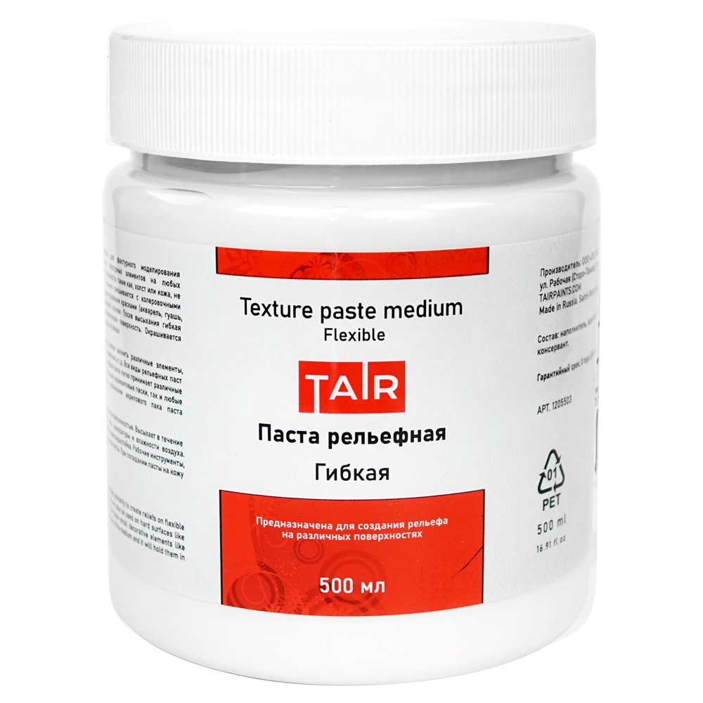 Гибкая рельефная паста предназначена для создания рельефа в первую очередь на гибких, таких как, холст, картон или кожа, поверхностях. Но она также успешно применяется и на твёрдых подложках.