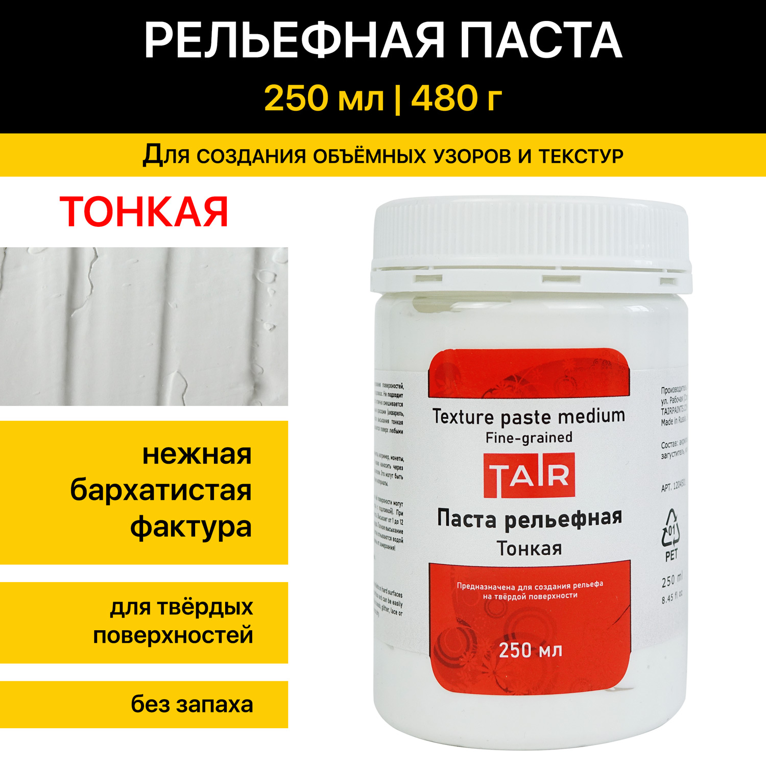 Тонкая рельефная паста предназначена для создания рельефа на любой твёрдой основе. Не подходит для работы на подвижных подложках: ткани, коже, холсте и пр.